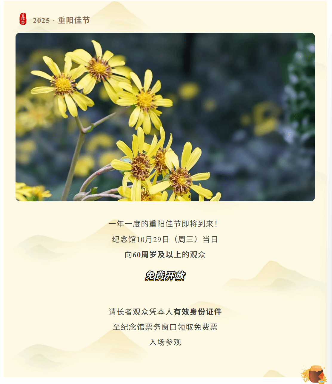 节日福利|10月29日重阳节60岁长者免费参观纪念馆