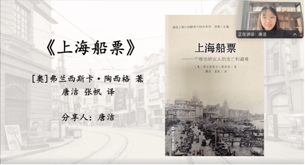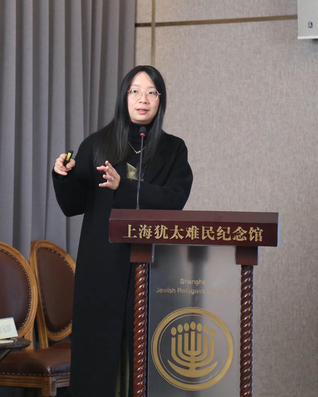 在新书分享环节,唐洁副教授分享了译著《上海船票——一个维也纳女人的流亡和避难》的主要内容。该小说是奥地利籍犹太难民弗兰西斯卡·陶西格根据其流亡上海经历创作的自传,她在作品中以细腻的笔触刻画了犹太难民群像,讲述了各国人民在上海的生存故事,勾勒出一幅“华洋杂糅”的上海多元文化图景。唐洁指出,该自传不仅属于个人记忆,更是一段珍贵的历史见证,折射出上海在动荡时代展现的包容与善意。回望这段历史,不仅是为了纪念,更是为了从中理解“人类命运共同体”的深刻内涵。